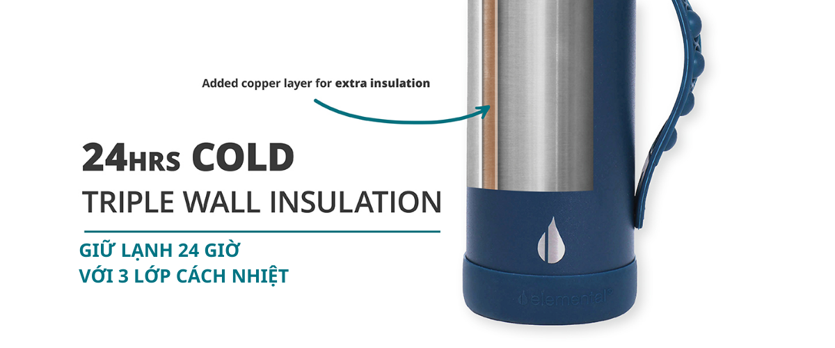 • Bình Elemental sử dụng công nghệ vách kép ngăn ngừa sự ngưng tụ hơi nước ở bên ngoài chai và có thể tái chế, không rửa trôi nên sẽ không giữ lại vị hoặc mùi.